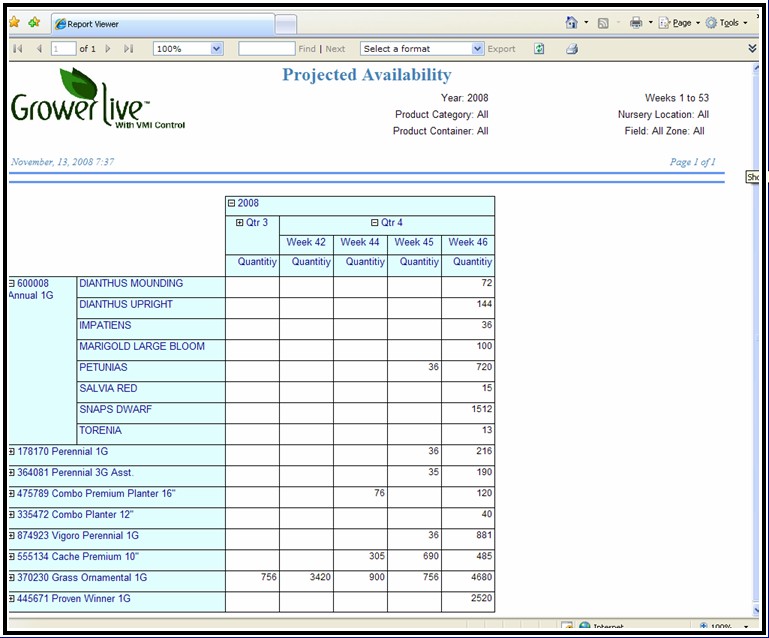 Your vendors can provide you with real-time availability through GrowerLive Nursery System. It can be accomplished by utilizing an interenet capable mobile device in their growing facility, or entered directly into GrowerLive Nursery System. Secure, limited access to your vendors can also be provided. They can view the inventory committed to orders, and assure that you will have enough product at the time of order fulfillment.